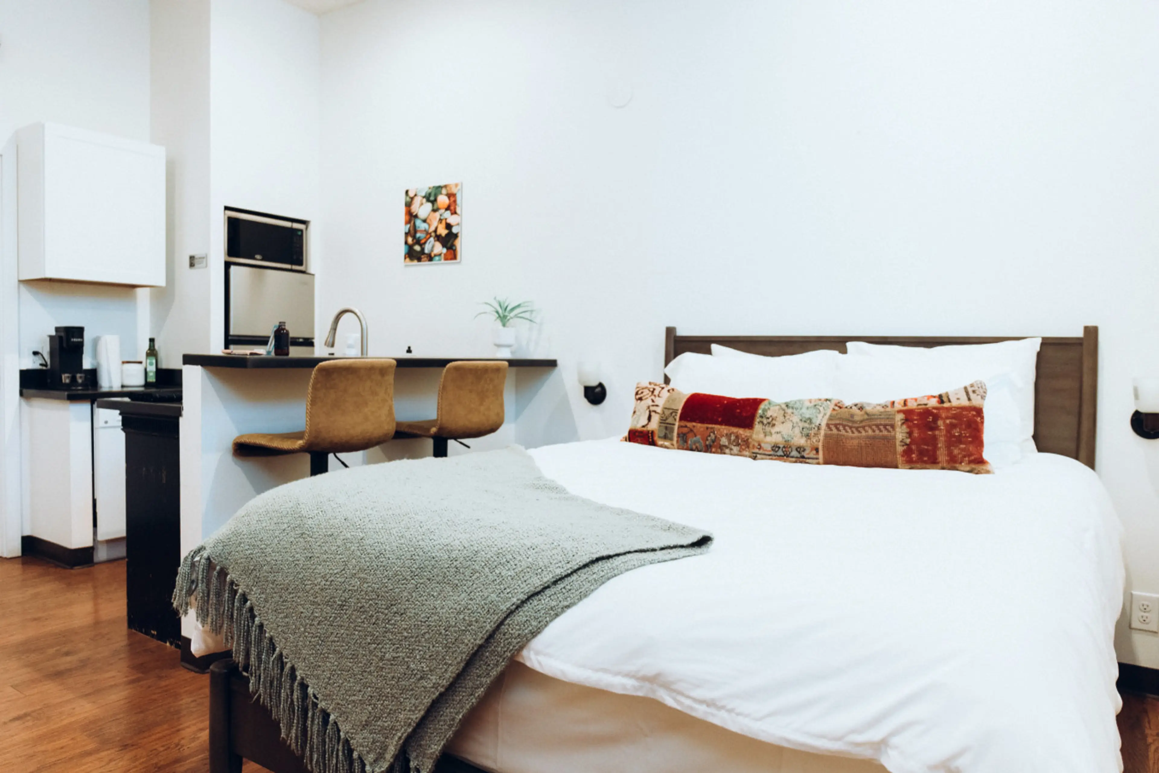 Currently undergoing an interior refresh to fit the brand, our modern studio apartment is an efficient space that offers all the comforts of home, including a king sized bed, fully equipped kitchen, and private tiled bathroom. Whether you're here for business or pleasure, our central location is per...
